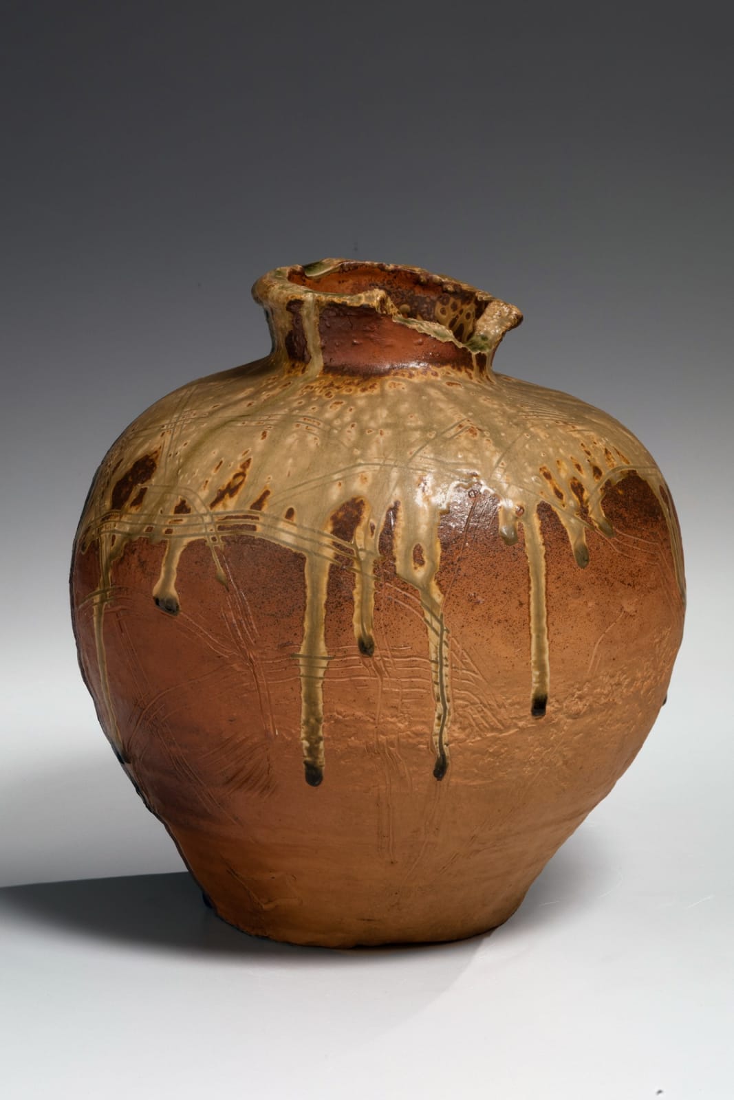 The exhibition is open by appointment and among the works on offer will be this 11½ x 11¼ in. (29 x 28.5 cm) glazed stoneware Shigaraki vase from c.1960.