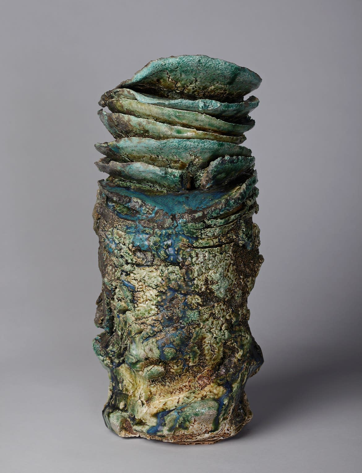 Wood-fired stoneware, blue and green copper Oribe glazes