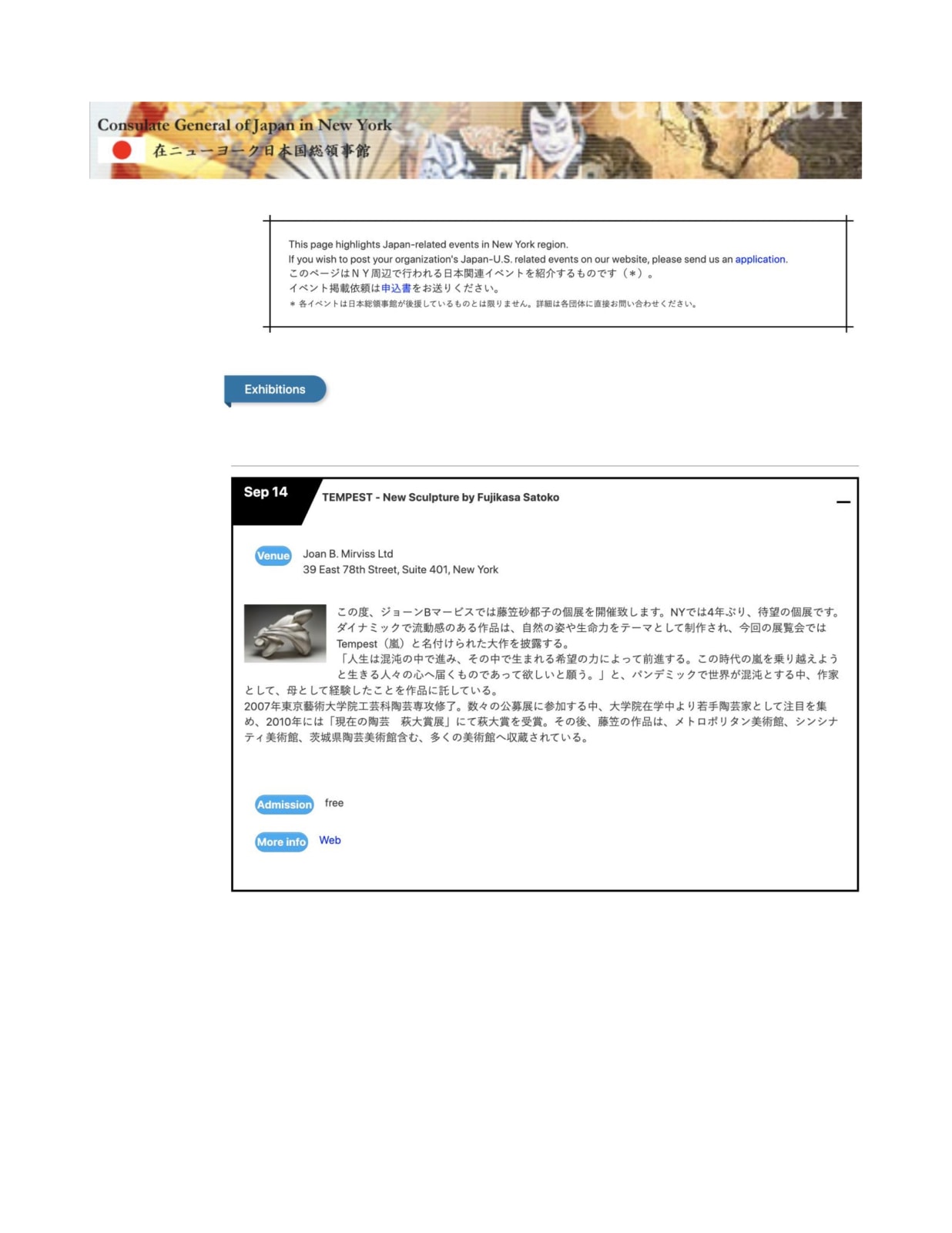 The latest exhibition of work by extraordinary artist Fujikasa Satoko is on the Consulate General of Japan in New York's September exhibitions calendar