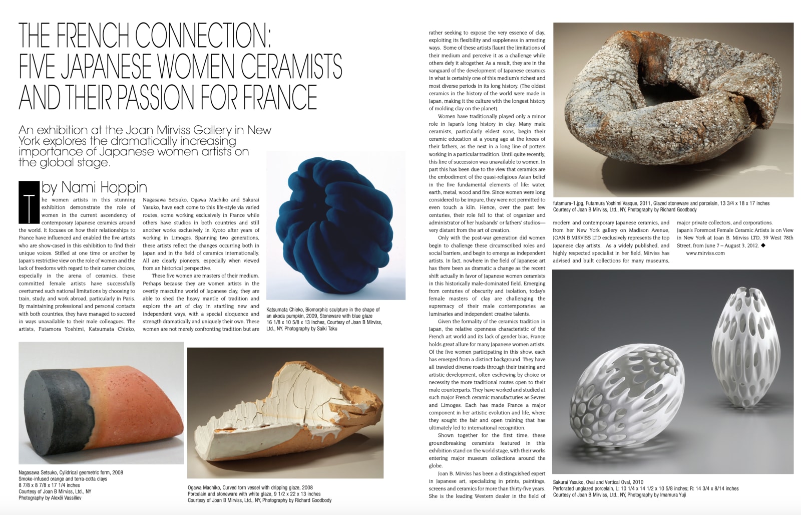 Japan’s Foremost Female Ceramic Artists is on View in New York at Joan B. Mirviss LTD, 39 West 78th Street, from June 7 – August 3, 2012.