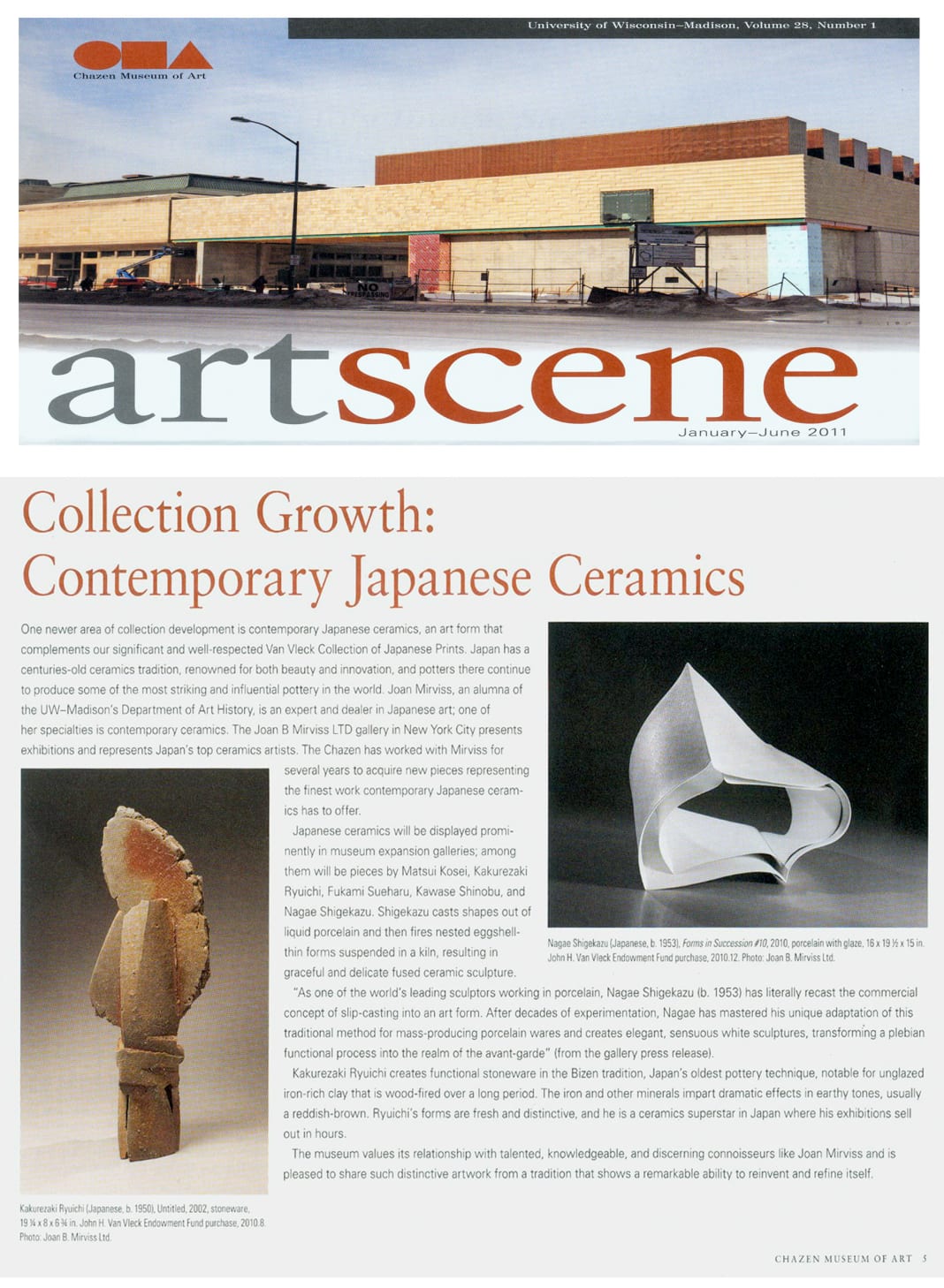 The Joan B Mirviss LTD gallery in New York City presents exhibitions and represents Japan's top ceramics artists. The Chazen has worked with Mirviss for several years to acquire new pieces representing the finest work contemporary Japanese ceramics has to offer.