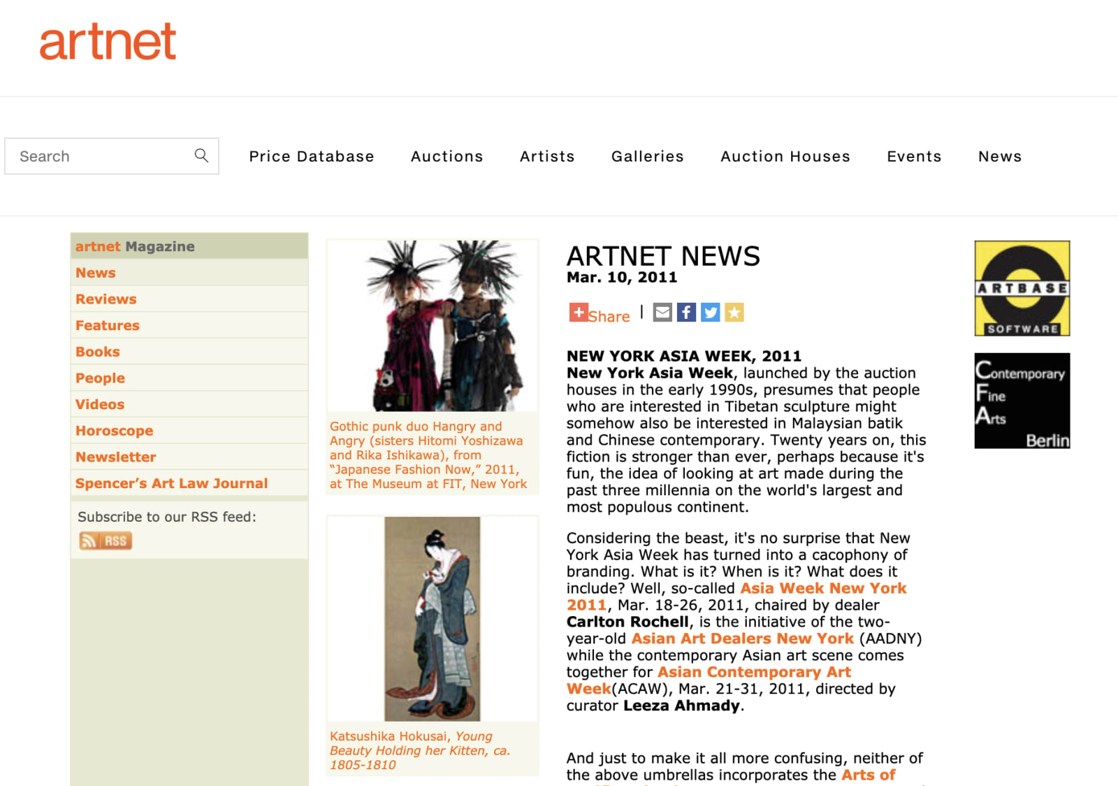 Considering the beast, it's no surprise that New York Asia Week has turned into a cacophony of branding. What is it? When is it? What does it include? Well, the auction houses join with more than 30 galleries for Asia Week New York 2011, Mar. 18-26, 2011, chaired by dealer Carlton Rochell, while the contemporary Asian art scene comes together for Asian Contemporary Art Week(ACAW), Mar. 21-31, 2011, directed by curator Leeza Ahmady.